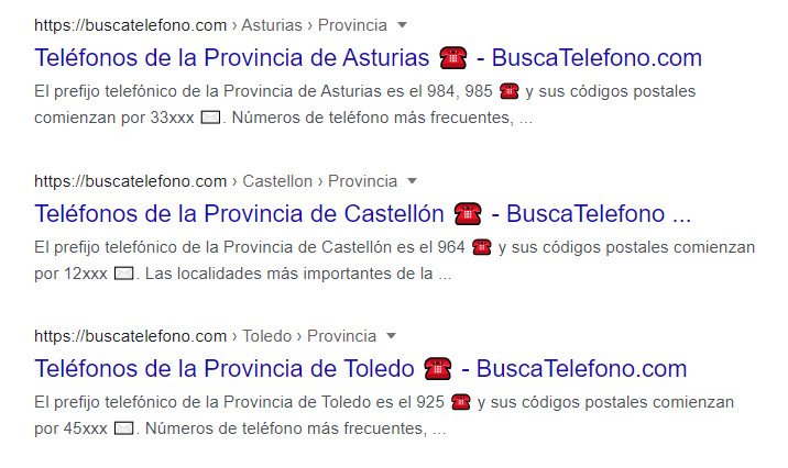 www.google.com/ ...lefono.com (ejemplo de uso de emojis en títulos: